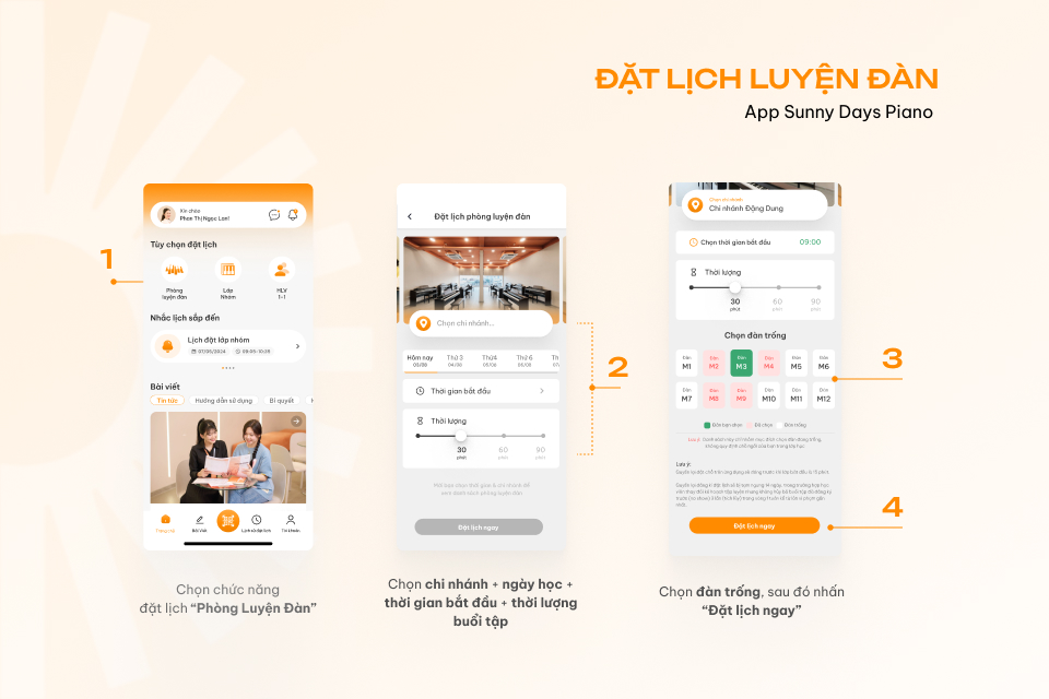 3. Hướng dẫn đặt lịch luyện đàn