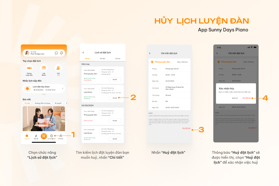 3.2. Hướng dẫn huỷ lịch luyện đàn